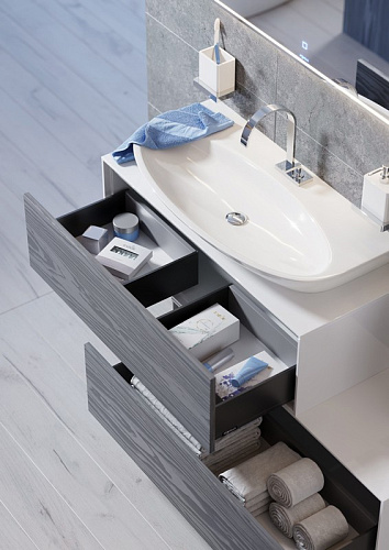 Механизм открывания отделения push-to-open: никаких выпирающих ручек. Открыть шкаф можно посредством легкого нажатия на крышку фасада.