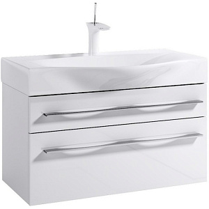 Подвесная тумба под раковину Aqwella 5 Stars Милан 80 Mil.01.08/2/W белая, с глянцевой поверхностью, с двумя выдвижными ящиками, для использования в ванных комнатах с повышенной влажностью.