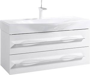 Подвесная тумба под раковину Aqwella 5 Stars Милан 100 Mil.01.10/2/W белая, с глянцевой поверхностью, с двумя выдвижными ящиками, для использования в ванных комнатах с повышенной влажностью.