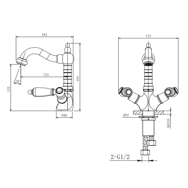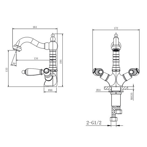 Смеситель Caprigo 03-526-сrm Adria-Classic для умывальника, хром