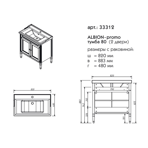 Тумба Caprigo 33312-В002 Albion Promo под раковину 80х45 см, Bianco Antico