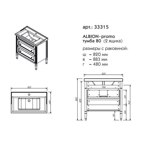Тумба Caprigo 33315-В002 Albion Promo под раковину 80х45 см, Bianco Antico