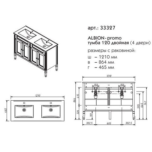 Тумба АЛЬБИОН-120 двойная, 4 двери