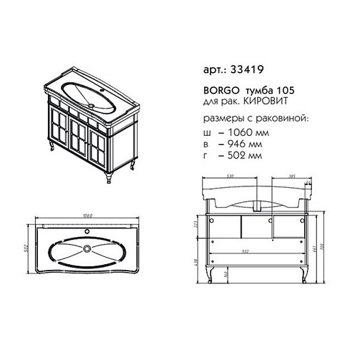 Тумба Caprigo 33419-B136 Borgo под раковину 105х46 см, синий