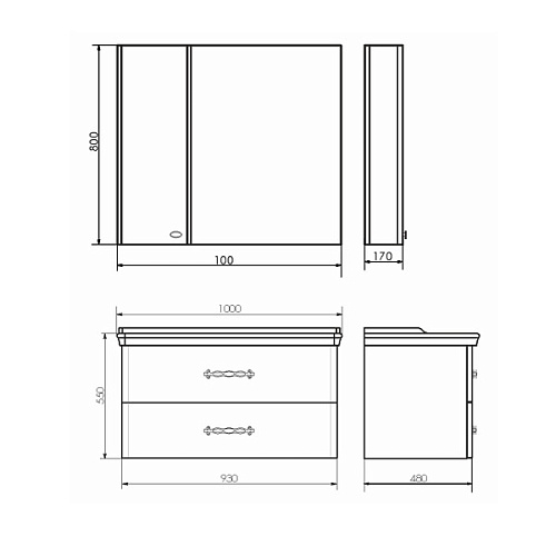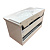Подвесная тумба с двумя широкими выкатными ящиками оснащенными системой плавного закрывания. Оригинальные эргономичные ручки. Тумба укомплектована раковиной столешницей с овальной чашей. Раковина с одним отверстием под смеситель, есть разметка под установку смесителя на три отверстия.