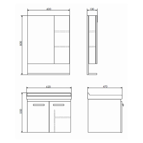 Комплектация: раковина Comforty 9335-60. Подвесная тумба-умывальник с двумя распашными створками оснащенными системой плавного закрывания. За створками вертикальная перегородка по центру и горизонтальная полка справа.