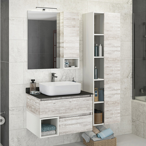 Зеркальный шкаф Comforty 00004144199 Прага 75х80 см, дуб белый