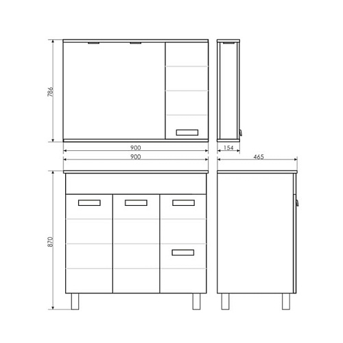 Вместительная тумба под раковину на ножках с двумя распашными дверцами оснащенными петлями с плавным закрыванием и двумя ящиками. Фасады фрезерованы и покрыты белой матовой эмалью.
