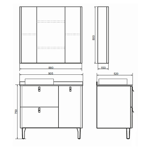 Габариты (ШхВхГ): 880*800*150 мм