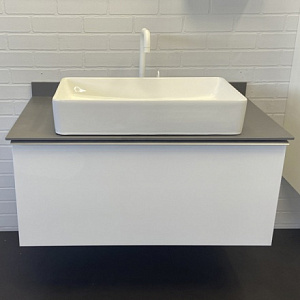 Тумба с раковиной Comfortу Милан-90, подвесная, белый глянцевый с серой New столешницей, раковина Comfortу 78189 белая, 00-00003825