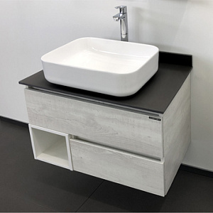Тумба Comforty 00-00004198 Прага подвесная 75х52 см, с раковиной T-Y9378, дуб белый/антрацит снят с производства