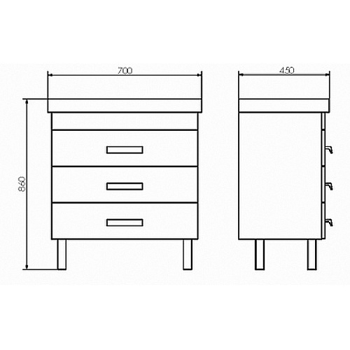 Напольная тумба с тремя выдвижными ящиками, оснащенными системой плавного закрывания. Оригинальные эргономичные металлические ручки.