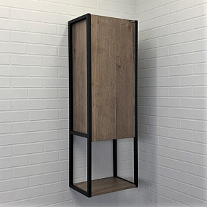 Подвесной шкаф - со створкой и пространством для открытого хранения. Фасад и корпус из влагостойкого ЛДСП. В основе металлическая рама из окрашенного в черный муар металла. Петли створки с механизмами плавного закрывания. Створка может быть подвешена с правым или левым расположением петель.
