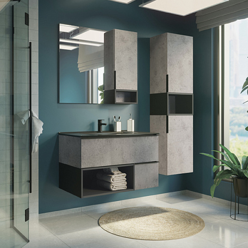 Зеркальный шкаф Comforty 00-00006504 Франкфурт 90х80 см, светлый бетон