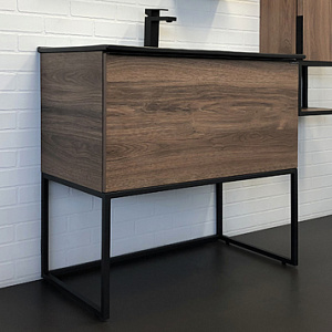 Тумба Comforty 00-00006655 Равенна напольная 90х47 см, с раковиной 90E, дуб темно-коричневый/черный