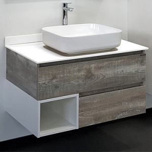 Тумба-умывальник выпускается в следующих сочетаниях: ВЛДСП дуб белый - серая столешница или столешница цвета антрацит; ВЛДСП дуб бежевый - бежевая столешница.