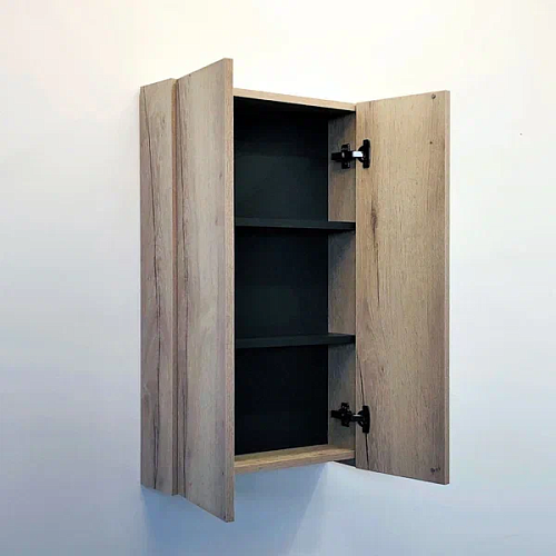 Подвесной шкаф из коллекции Порто отличное решение для хранения разных предметов необходимых в ванной комнате. За створками две горизонтальные полки. Петли с механизмами плавного закрывания.