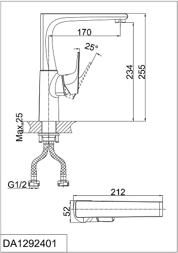 Смеситель D&K DA1292401 Rhein.Hertz для кухни, хром