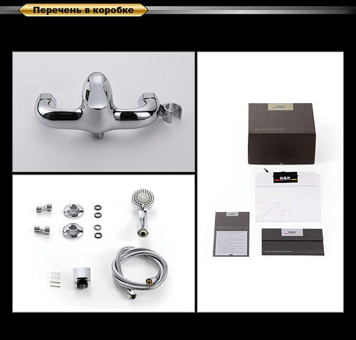 Оснащение Держатель для душа, душевая лейка, душевой шланг, эксцентрики, декоративная шайба (отражатель), паспорт, брендовая сумка.