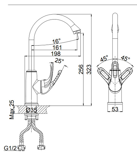 – Гибкая подводка 40 см идёт в комплекте для быстрой установки.