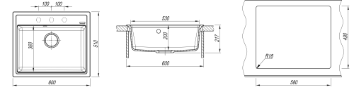 Мойка Florentina Липси 20.120.D0600.302 600x520, кварцевый композит, 1 чаша, цвет антрацит Компактная мойка с вместительной чашей, дополнительные отверстия под аксессуары. Элегантный дизайн и практичность. Мойка изготовлена из кварцевого песка, который обеспечивает высокую износостойкость поверхности моек. В структуру мойки введены специальные антибактериальные защитные комплексы на основе серебра. В результате этого рабочая поверхность всегда будет гигиенически чистой. Технические характеристики: - Цвет: антрацит. - Материал: искусственный гранит. - Монтаж: врезная. - Количество чаш: 1. - Ширина шкафа: мм 600. - Форма: прямоугольная. - Размеры: (ШхГхВ), мм 600х520х217. - В комплекте: отводная арматура с выпуском D=90 мм и переливом.