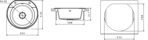 Мойка Florentina Эльба 20.145.C0555.201 555x510, кварцевый композит, 1 чаша, цвет жасмин Круглая мойка в современном дизайне, удобная просторная чаша. Дополнительное отверстие под аксессуары. Технические характеристики: - Цвет: жасмин. - Материал: искусственный гранит. - Монтаж: врезная. - Количество чаш: 1. - Ширина шкафа: мм 500. - Форма: круглая. - Размеры: (ШхГхВ), мм 555х510х217. - В комплекте: отводная арматура с выпуском D=90 мм и переливом.