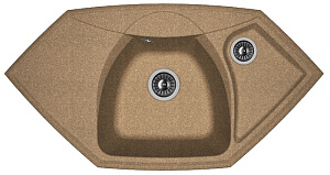 Мойка Florentina Сардиния 20.150.D0980.105 980x510, кварцевый композит, 1 чаша+ дополнительная чаша, цвет коричневый Современный дизайн, рельефная чаша и углубленное крыло. Дополнительное отверстие под аксессуары. Технические характеристики: - Цвет: коричневый. - Материал: искусственный гранит. - Монтаж: врезная. - Количество чаш: 1. - Дополнительная чаша: 1. - Ширина шкафа: мм 600. - Форма: угловая. - Размеры: (ШхГхВ), мм 980х510х217. - В комплекте: отводная арматура для двух разноуровневых чаш с выпусками D=60 мм, D=90 мм и переливом.