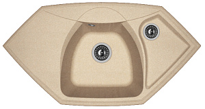Мойка Florentina Сардиния 20.150.D0980.107 980x510, кварцевый композит, 1 чаша + дополнительная чаша, цвет песочный Современный дизайн, рельефная чаша и углубленное крыло. Дополнительное отверстие под аксессуары. Технические характеристики: - Цвет: песочный. - Материал: искусственный гранит. - Монтаж: врезная. - Количество чаш: 1. - Дополнительная чаша: 1. - Ширина шкафа: мм 600. - Форма: угловая. - Размеры: (ШхГхВ), мм 980х510х217. - В комплекте: отводная арматура для двух разноуровневых чаш с выпусками D=60 мм D=90 мм и переливом.