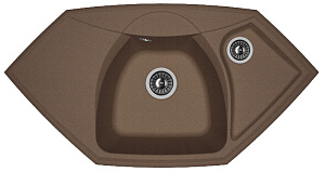 Мойка Florentina Сардиния 20.150.D0980.303 980x510, кварцевый композит, 1 чаша + дополнительная чаша, цвет мокко Современный дизайн, рельефная чаша и углубленное крыло. Дополнительное отверстие под аксессуары. Технические характеристики: - Цвет: мокко. - Материал: искусственный гранит. - Монтаж: врезная. - Количество чаш: 1. - Дополнительная чаша: 1. - Ширина шкафа: мм 600. - Форма: угловая. - Размеры: (ШхГхВ), мм 980х510х217. - В комплекте: отводная арматура для двух разноуровневых чаш с выпусками D=60 мм, D=90 мм и переливом.