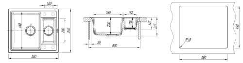 Мойка Florentina Липси К 20.210.D0580.302 580x510, кварцевый композит, 1 чаша + дополнительная чаша, цвет антрацит Современная мойка с малой чашей, практичный размер мойки. Модель оборачиваемая. Дополнительные отверстия под аксессуары. Технические характеристики: - Цвет: антрацит. - Материал: искусственный гранит. - Монтаж: врезная. - Количество чаш: 1. - Дополнительная чаша: 1. - Ширина шкафа: мм 600. - Форма: прямоугольная. - Размеры: (ШхГхВ), мм 580х510х217. - В комплекте: отводная арматура для двух разноуровневых чаш с выпусками D=90 мм и переливом.