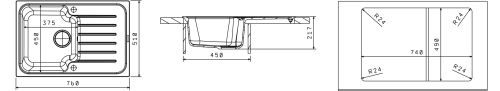 Мойка Florentina Таис 20.260.B0760.305 760x510, кварцевый композит, 1 чаша, цвет серый Универсальная мойка под любой стиль кухни, вместительная чаша с крылом. Модель оборачиваемая. Технические характеристики: - Цвет: серый. - Материал: искусственный гранит. - Монтаж: врезная. - Количество чаш: 1. - Ширина шкафа: мм 450. - Форма: прямоугольная. - Размеры: (ШхГхВ), мм 760х510х217. - В комплекте: отводная арматура с выпуском D=90 мм и переливом.