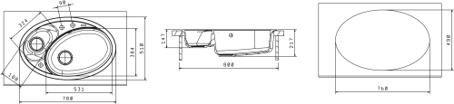 Мойка Florentina Селена 20.265.E0780.102 780x510, кварцевый композит, 1 чаша + дополнительная чаша, цвет черный Современная мойка с динамичными линиями, практичный размер основной и малой чаши. Предусмотрены дополнительные отверстия под установку аксессуаров. Технические характеристики: - Цвет: черный. - Материал: искусственный гранит. - Монтаж: врезная. - Количество чаш: 1. - Дополнительная чаша: 1. - Ширина шкафа: мм 800. - Форма: овальная. - Размеры: (ШхГхВ), мм 780х510х217. - В комплекте: отводная арматура для двух разноуровневых чаш с выпусками D=90 мм и двумя переливами.