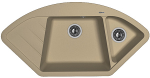 Мойка Florentina Веста 20.285.E1005.306 1005x510, кварцевый композит, 1 чаша + дополнительная чаша, цвет капучино Угловая мойка с дополнительной малой чашей и крылом. Универсальные размеры мойки позволяют устанавливать ее в угловые блоки практически всех стандартных размеров. Технические характеристики: - Цвет: капучино. - Материал: искусственный гранит. - Монтаж: врезная. - Количество чаш: 1. - Ширина шкафа: мм 800. - Форма: угловая. - Размеры: (ШхГхВ), мм 1005х510х217. - В комплекте: отводная арматура для двух разноуровневых чаш с выпусками D=90 мм и переливом.