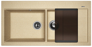 Мойка Florentina Россана 20.335.E1000.104 1000x510, кварцевый композит, 1 чаша + дополнительная чаша, цвет бежевый Стильная и современная мойка с разделочной доской из вандалоустойчивого стекла. Доска легко передвигается по всей длине мойки и создает дополнительную рабочую поверхность. Предусмотрены дополнительные отверстия под аксессуары. Технические характеристики: - Цвет: бежевый. - Материал: искусственный гранит. - Монтаж: врезная. - Количество чаш: 1. - Дополнительная чаша: 1. - Ширина шкафа: мм 800. - Форма: прямоугольная. - Размеры: (ШхГхВ), мм 1000х510х217. - В комплекте: отводная арматура для двух разноуровневых чаш с выпусками D=90 мм и переливом