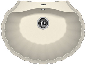 Мойка Florentina Гребешок 20.345.E0695.201 695x525, кварцевый композит, 1 чаша, цвет жасмин Необычная кухонная мойка, напоминающая форму раковины. Придаст неповторимость и настроение Вашей кухне. Дополнительные отверстия для установки аксессуаров. Технические характеристики: - Цвет: жасмин. - Материал: искусственный гранит. - Монтаж: врезная. - Количество чаш: 1. - Ширина шкафа: мм 800. - Форма: овальная. - Размеры: (ШхГхВ), мм 695х525х217. - В комплекте: отводная арматура с выпуском D=90 мм и переливом.