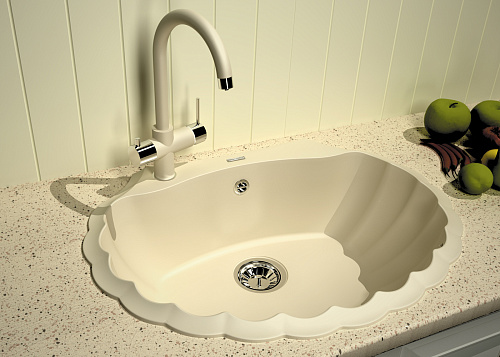 Необычная кухонная мойка, напоминающая форму раковины. Придаст неповторимость и настроение Вашей кухне. Дополнительные отверстия для установки аксессуаров.