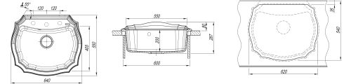 Мойка Florentina Эмилия 20.355.D0640.102 640x550, кварцевый композит, 1 чаша, цвет черный Функциональная мойка с большой чашей, плавные, изящные линии. Мойка устанавливается задним бортом вплотную к кухонному фартуку/стене. Дополнительные отверстия под аксессуары. Технические характеристики: - Цвет: черный. - Материал: искусственный гранит. - Монтаж: врезная. - Количество чаш: 1. - Ширина шкафа: мм 600. - Форма: овальная. - Размеры: (ШхГхВ), мм 640х550х287. - В комплекте: отводная арматура с выпуском D=90 мм и переливом.