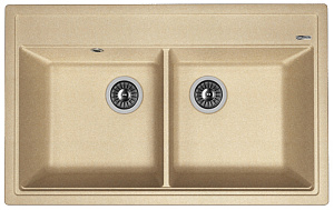 Мойка Florentina Липси 20.370.E0820.107 820x510, кварцевый композит, 2 чаши, цвет песочный Двухчашевая мойка из серии «Липси», элегантный классический дизайн в сочетании с практичностью. Предусмотрены дополнительные отверстия для установки аксессуаров. Технические характеристики: - Цвет: песочный. - Материал: искусственный гранит. - Монтаж: врезная. - Количество чаш: 2. - Ширина шкафа: мм 800. - Форма: прямоугольная. - Размеры: (ШхГхВ), мм 820х510х217. - В комплекте: отводная арматура с выпуском для двух одноуровневых чаш D=90 мм с переливом.