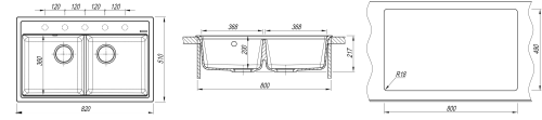 Мойка Florentina Липси 20.370.E0820.305 820x510, кварцевый композит, 2 чаши, цвет серый Двухчашевая мойка из серии «Липси», элегантный классический дизайн в сочетании с практичностью. Предусмотрены дополнительные отверстия для установки аксессуаров. Технические характеристики: - Цвет: серый. - Материал: искусственный гранит. - Монтаж: врезная. - Количество чаш: 2. - Ширина шкафа: мм 800. - Форма: прямоугольная. - Размеры: (ШхГхВ), мм 820х510х217. - В комплекте: отводная арматура с выпуском для двух одноуровневых чаш D=90 мм с переливом.
