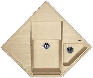 Мойка Florentina Бомбей 20.375.J0900.107 900x900, кварцевый композит, 1 чаша + дополнительная чаша, цвет песочная Угловой блок Бомбей - каменный полуостров на Вашей кухне, воплощение настоящей функциональности. Блок включает в себя: основную чашу, малую чашу, крыло, углубленную площадку для сушки и разморозки. Предусмотрены дополнительные отверстия под аксессуары. Технические характеристики: - Цвет: антрацит. - Материал: искусственный гранит. - Монтаж: врезная. - Количество чаш: 1. - Углубленная площадка для сушки и разморозки. - Размеры: (ШхГхВ), мм 900х900х217. - В комплекте: отводная арматура для двух разноуровневых чаш с выпусками D=90 мм и переливом.
