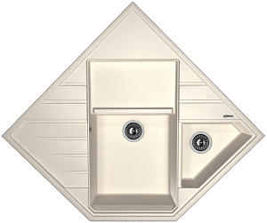 Мойка Florentina Бомбей 20.375.J0900.201 900x900, кварцевый композит, 1 чаша + дополнительная чаша, цвет жасмин Угловой блок Бомбей - каменный полуостров на Вашей кухне, воплощение настоящей функциональности. Блок включает в себя: основную чашу, малую чашу, крыло, углубленную площадку для сушки и разморозки. Предусмотрены дополнительные отверстия под аксессуары. Технические характеристики: - Цвет: антрацит. - Материал: искусственный гранит. - Монтаж: врезная. - Количество чаш: 1. - Углубленная площадка для сушки и разморозки. - Размеры: (ШхГхВ), мм 900х900х217. - В комплекте: отводная арматура для двух разноуровневых чаш с выпусками D=90 мм и переливом.