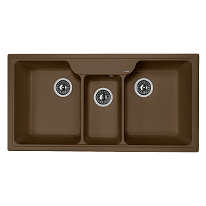 Мойка Florentina Юлия 20.445.H1000.303 1000x510, кварцевый композит, 3 чаши, цвет мокко Большая, функциональная мойка с тремя чашами в кухонный блок 100 см! Используйте все три чаши одновременно. Продуманный, лаконичный дизайн. Предусмотрены дополнительные отверстия под установку аксессуаров. Технические характеристики: - Цвет: мокко. - Материал: кварцевый композит - Поверхность: матовая. - Монтаж: врезная. - Форма: прямоугольная. - Диаметр слива, мм 90. - Число основных чаш: 2. - Число дополнительных чаш: 1. - В комплекте: сливная арматура, сифон.