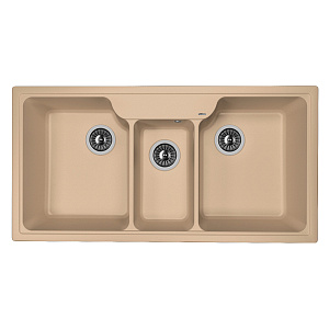 Мойка Florentina Юлия 20.445.H1000.306 1000x510, кварцевый композит, 3 чаши, цвет капучино Большая, функциональная мойка с тремя чашами в кухонный блок 100 см! Используйте все три чаши одновременно. Продуманный, лаконичный дизайн. Предусмотрены дополнительные отверстия под установку аксессуаров. Технические характеристики: - Цвет: капучино. - Материал: кварцевый композит - Поверхность: матовая. - Монтаж: врезная. - Форма: прямоугольная. - Диаметр слива, мм 90. - Число основных чаш: 2. - Число дополнительных чаш: 1. - В комплекте: сливная арматура, сифон.