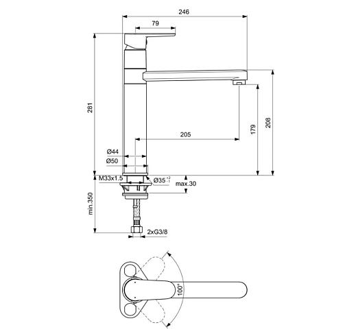 Смеситель Ideal Standard BC501XG Cerafine O для кухонной мойки, Silk Black (черный шелк)