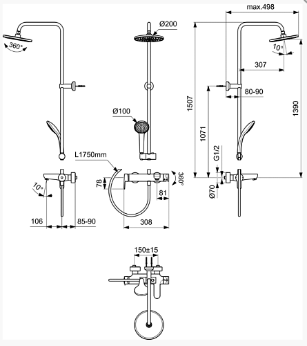 Душевая система Ideal Standard BL749S3 Cerafine O с аксессуарами, черный шелк