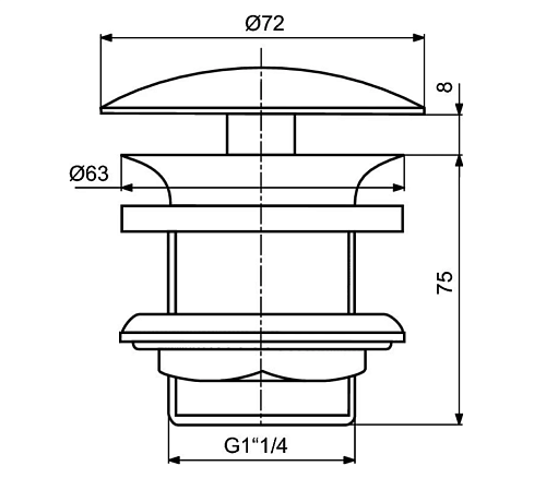 Специальный донный клапан 1.1/4" для умывальников и чаш без отверстия перелива.