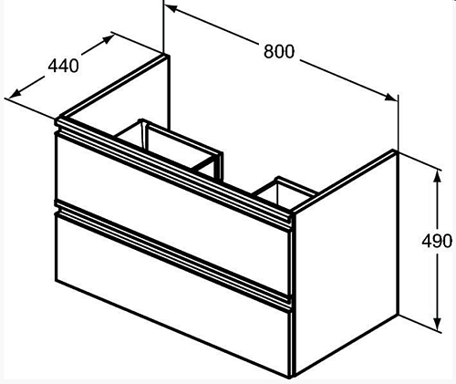 TESI Подстолье для умывальника для подвесного монтажа, с 2-мя ящиками с интегрированными ручками, система плавного закрытия, с крепежом.