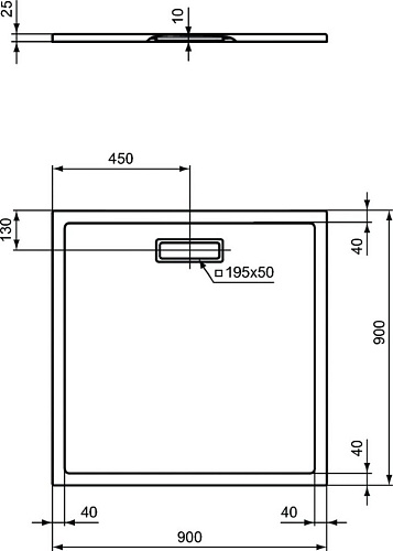 ULTRAFLAT NEW Ультратонкий акриловый квадратный душевой поддон. Для напольной или встраиваемой установки. Сифон с декоративной прямоугольной черной крышкой (T4493V3) заказывается дополнительно.