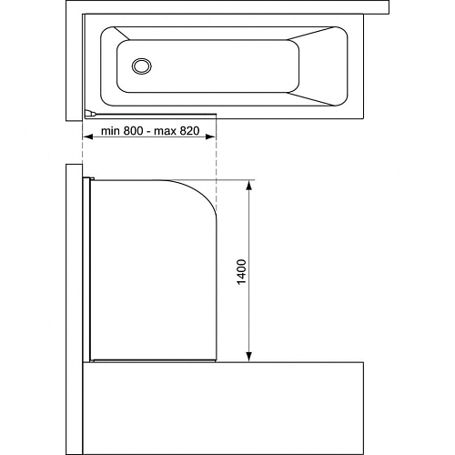 CONNECT Экран 80x140 см для прямоугольной ванны, безопасное прозрачное стекло 5 мм, реверсивная версия (для установки слева или справа).