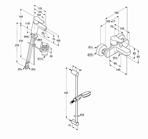 Комплект смесителей Kludi 376850565 Pure&Easy для ванны/душа 3in1, хром